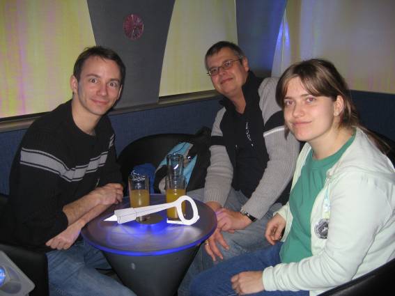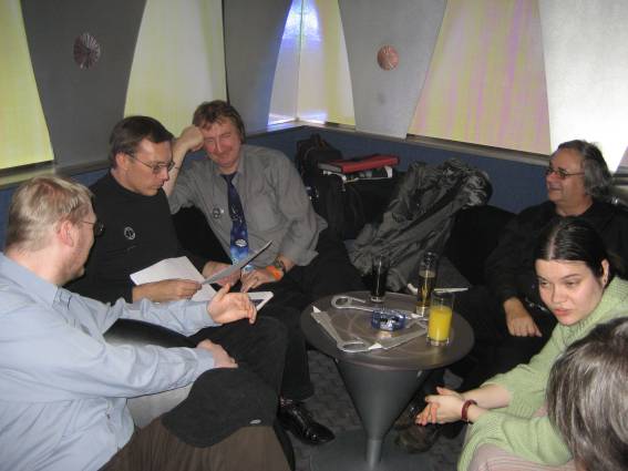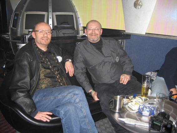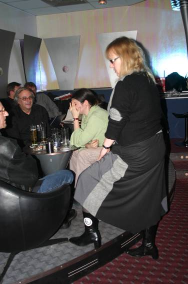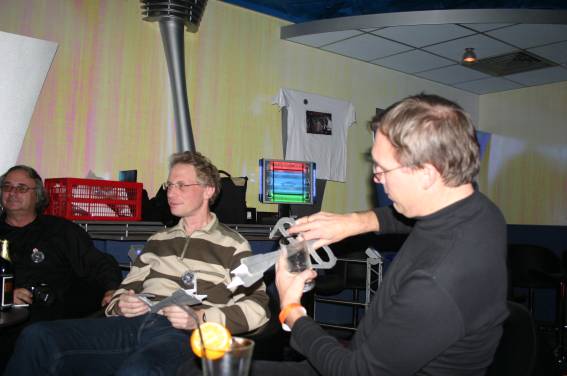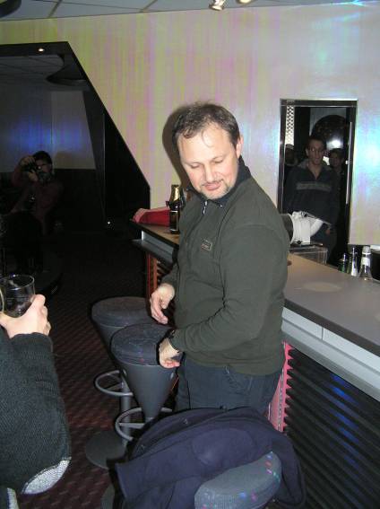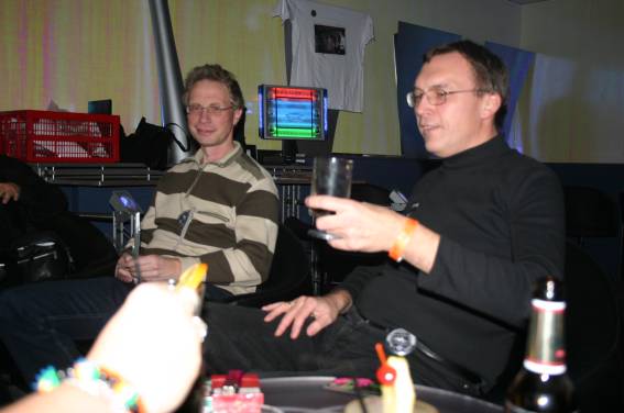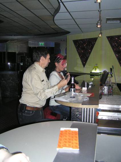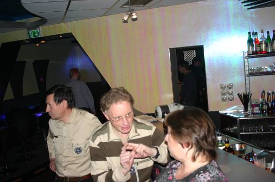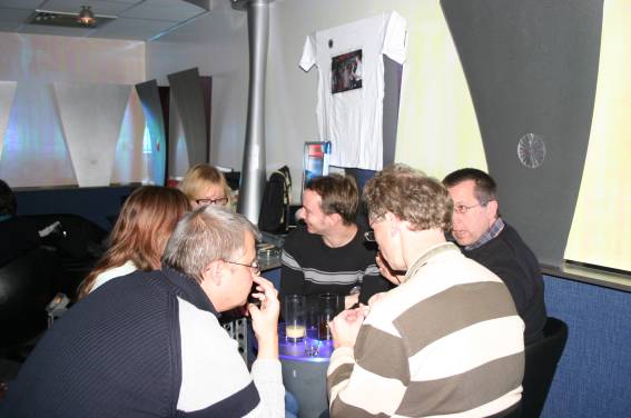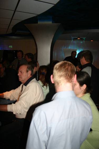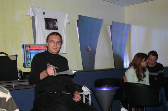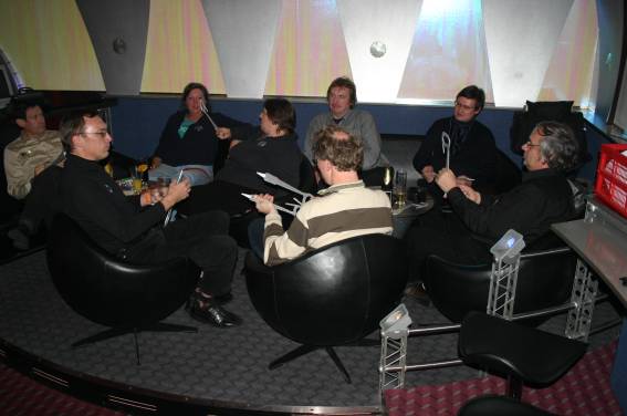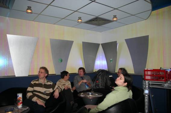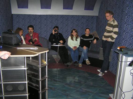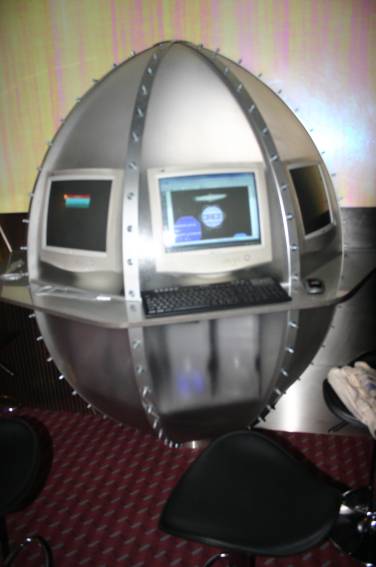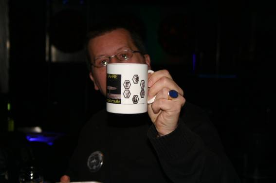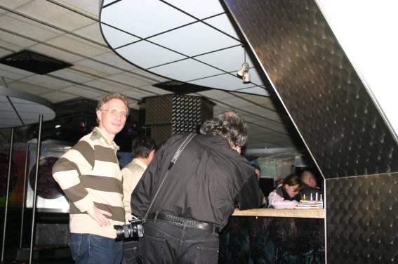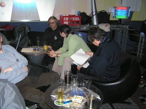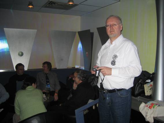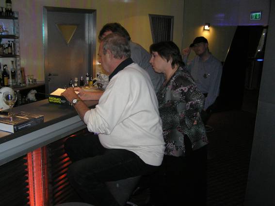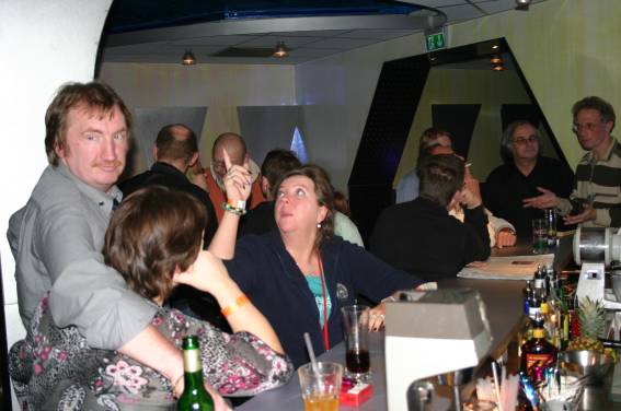 Außer den eingefleischten "Orioniken" waren auch noch Freunde vom Perry Rhodan Stammtisch Nürnberg der ARGE FESTAK und vom Perry Rhodan Stammtisch München ERNST ELLERT gekommen. Kleine Grüppchen belegten dann die Sitzplätze oder trafen sich an der Bar. Es wurde gefachsimpelt, Neuigkeiten ausgetauscht oder einfach nur ein Drink genossen. Am Computer-Ei konnte man ins Internet gehen oder im Nebenraum einen Videoclip oder einen Film betrachten.
