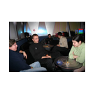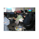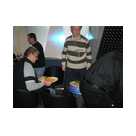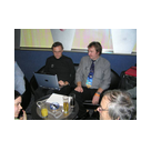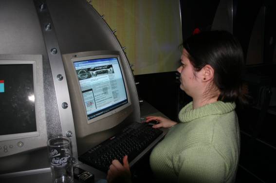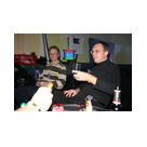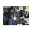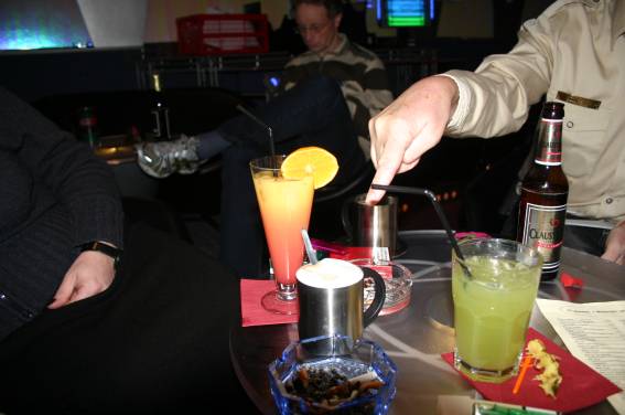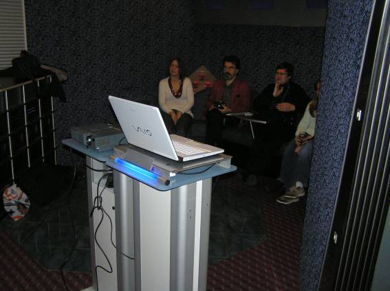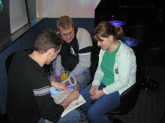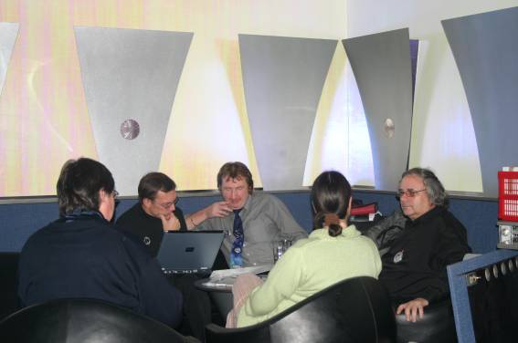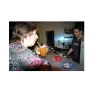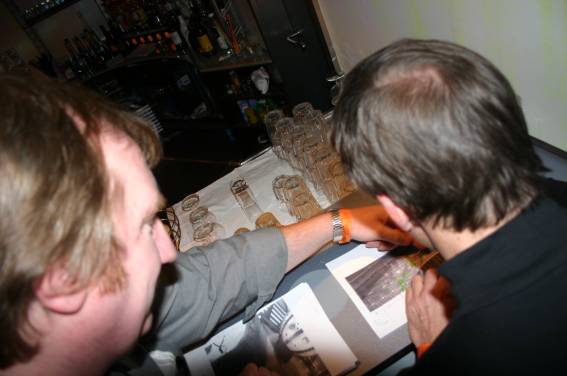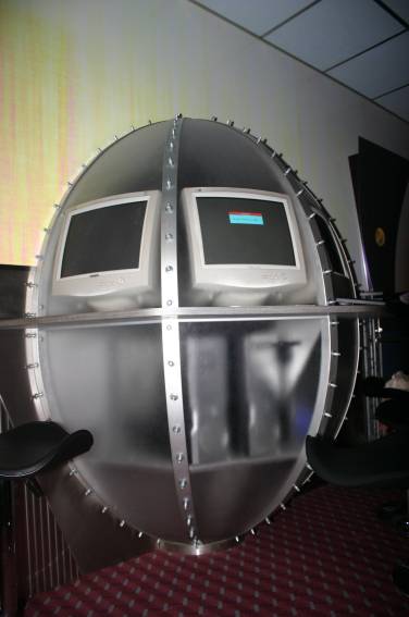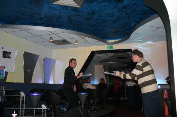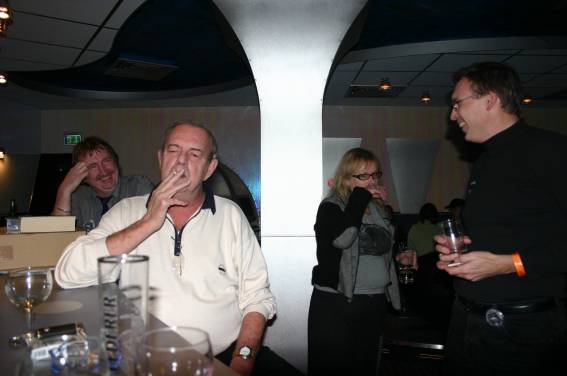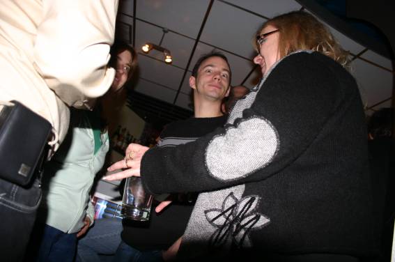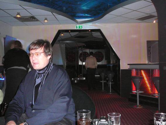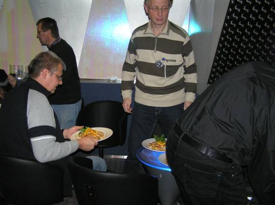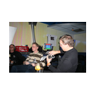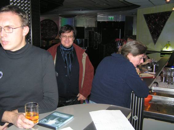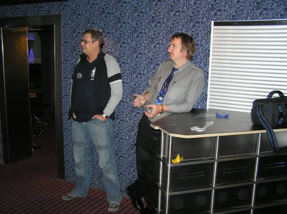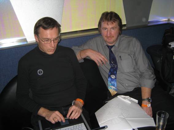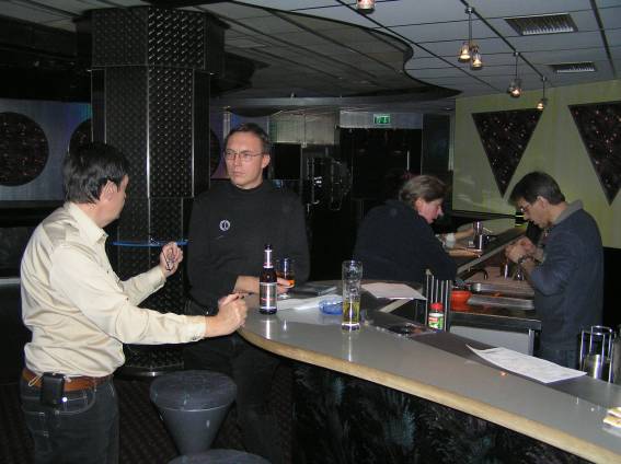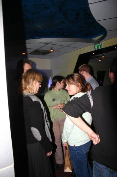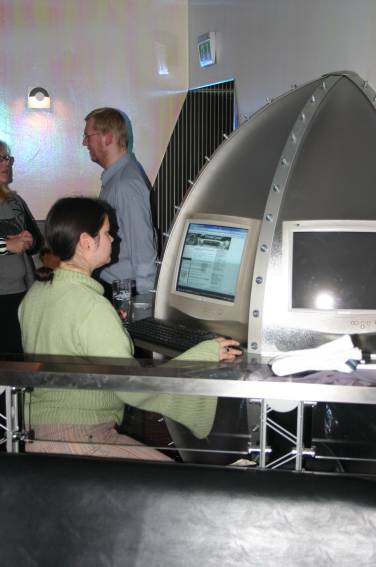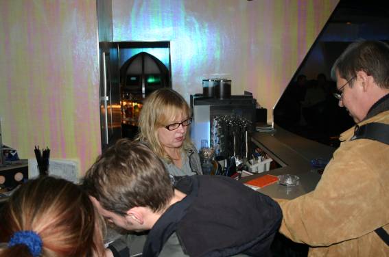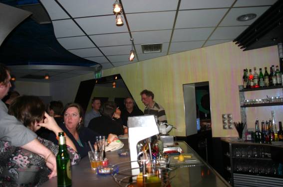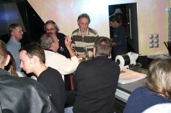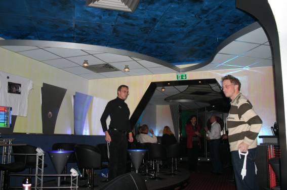 Außer den eingefleischten "Orioniken" waren auch noch Freunde vom Perry Rhodan Stammtisch Nürnberg der ARGE FESTAK und vom Perry Rhodan Stammtisch München ERNST ELLERT gekommen. Kleine Grüppchen belegten dann die Sitzplätze oder trafen sich an der Bar. Es wurde gefachsimpelt, Neuigkeiten ausgetauscht oder einfach nur ein Drink genossen. Am Computer-Ei konnte man ins Internet gehen oder im Nebenraum einen Videoclip oder einen Film betrachten.
