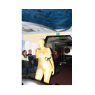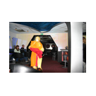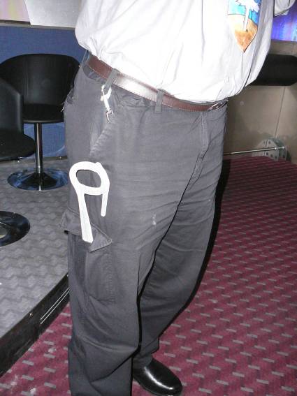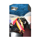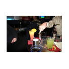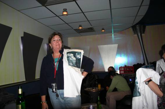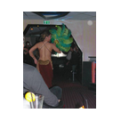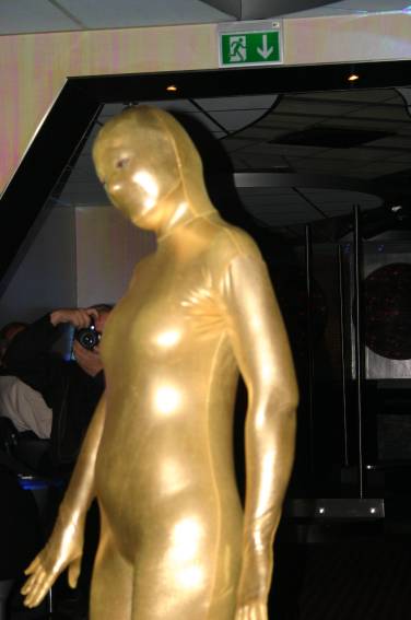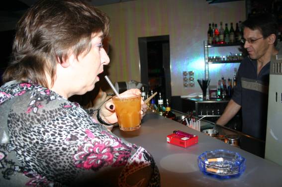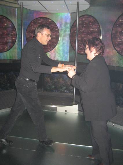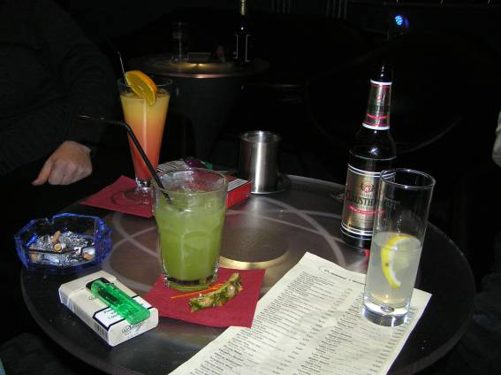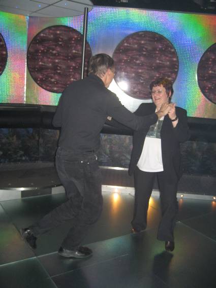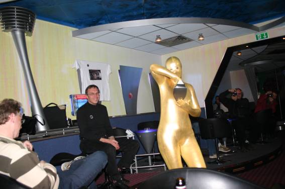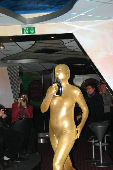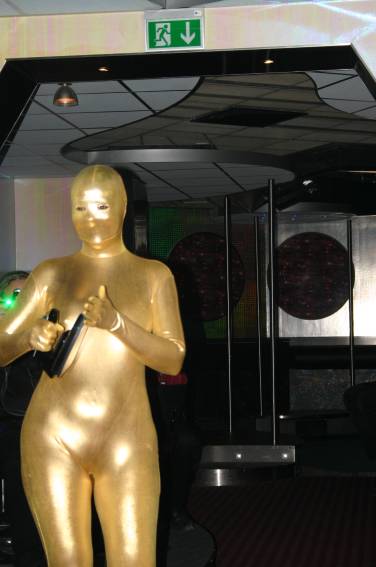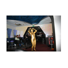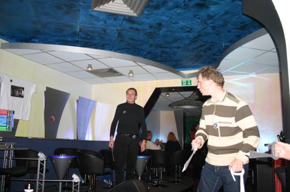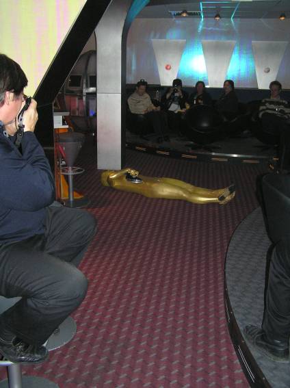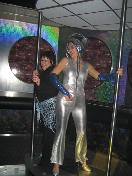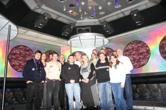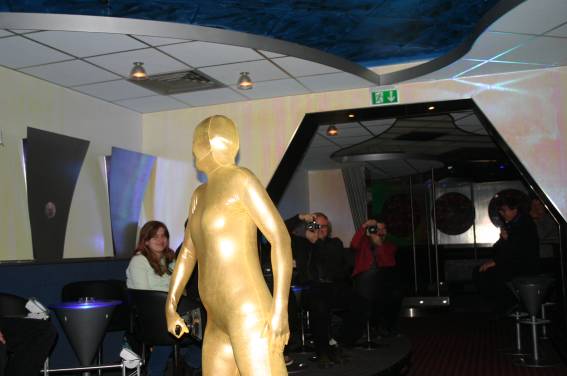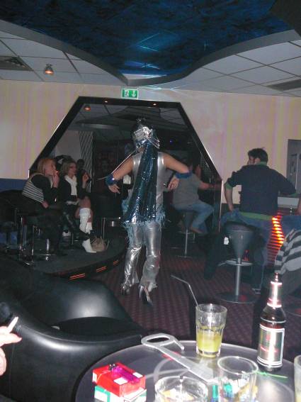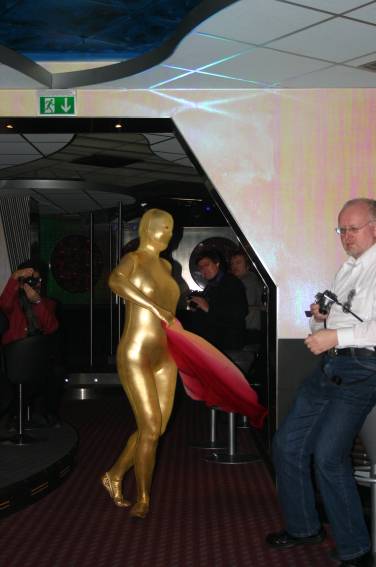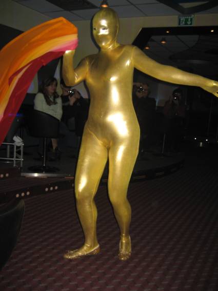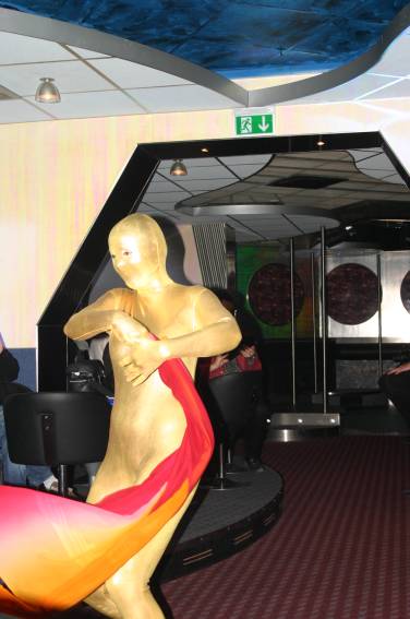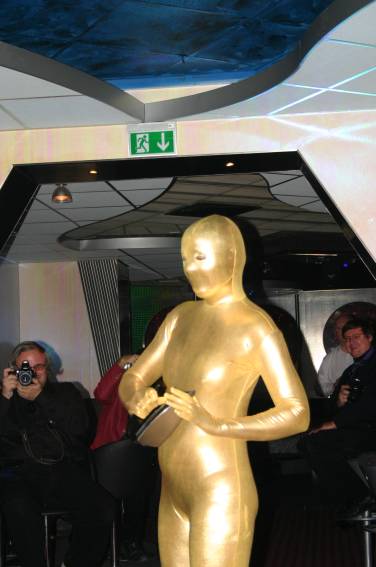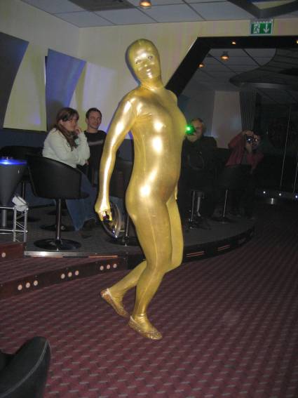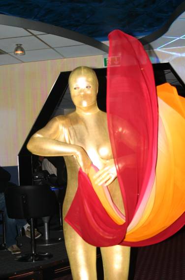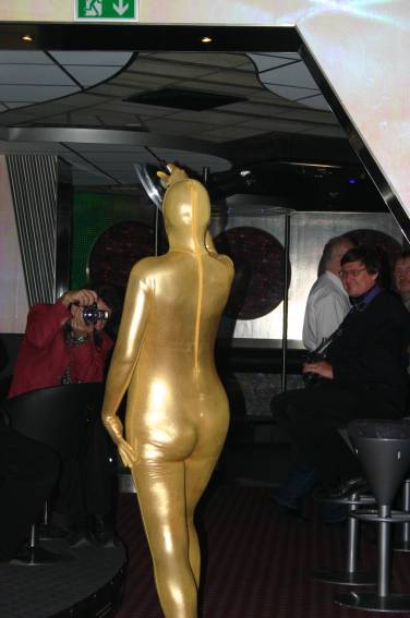 Zum Schluss, so gegen 23:00 Uhr hat sich dann ein Alien im Transporterraum der Enterprise in einer blauen Lichterscheinung materialisiert und versucht die Besatzung durch ihren Tanz zum Mitmachen zu bewegen. Der Erfolg war zwar auf Grund der hohen Massenträgheit der Besatzung nicht berauschend, aber die Performance von Sulamid war über jeden Zweifel erhaben und ausgezeichnet. Die letzten "Orioniken", die keine lange Heimreise mehr antreten mussten, verabschiedeten sich so gegen 01:30 Uhr aus der Orion-Bar. Ich denke der Abend war eine rundum gelungene Veranstaltung für die wir der Veranstalterin Rita Grünbein, Dagmar Rosenbauer und dem Personal der Orion-Bar herzlich danken möchten.