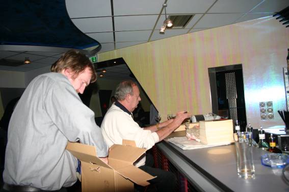 Pünktlich um 13:00 Uhr öffnete die Orion-Bar für alle "Orioniken", die es geschafft hatten wenigstens einmal im Jahr den Hintern vom Sofa zu heben und sich mit Gleichgesinnten zu treffen, die Pforten. Zuerst besichtigten alle, die noch nie in der Orion-Bar waren, die Räumlichkeiten und die Dekoration. Dann wurden Beamer und Notebook für Filmvorführungen aufgebaut und die Musikanlage angeworfen.