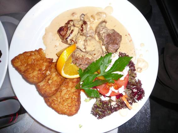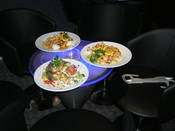Gegen 18:00 Uhr wurde dann vom Personal des "La Brasserie" das Abendessen aufgetragen. Fast zur gleichen Zeit trafen auch Roland und Dagmar Rosenbauer ein. Roland Rosenbauer ist sicher einigen als Autor von SF- und Horrorromanen bekannt. Dagmar Rosenbauer alias Sulamid war gekommen um die abendliche Tanzperfomance zu bestreiten.
